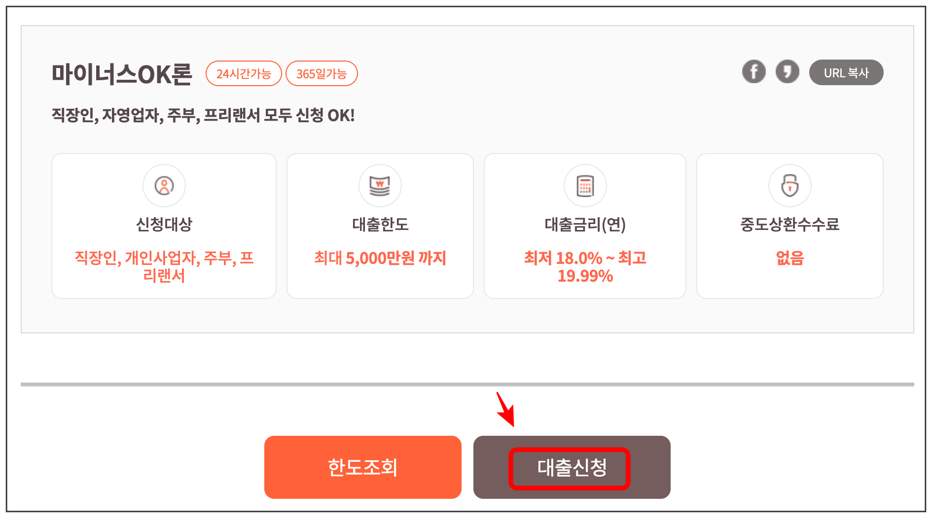 | 대출금리 | 최저 연 18% ~ 최고 연 19.99% |