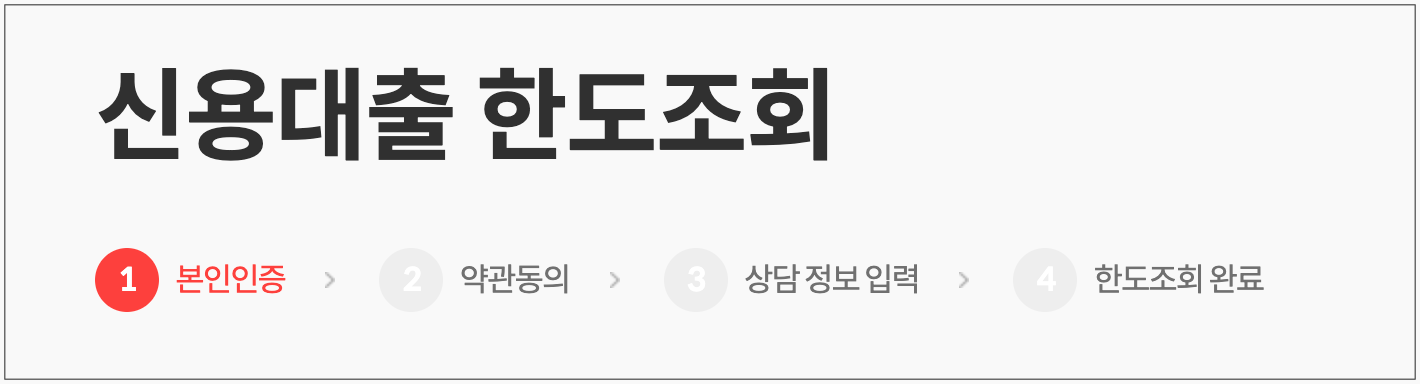 한도확인하기 > 본인인증 > 약관동의 > 상담정보입력 > 한도조회 완료 후, 대출을 진행합니다.
