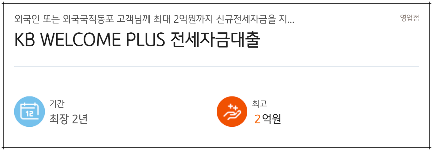 외국인을 대상으로 제 1금융권인 KB국민은행에서 전세자금대출을 해주고 있습니다. 외국인 또는 외국국적동포 고객에게 최대 2억원까지 신규 전세자금을 지원하는 상품입니다.