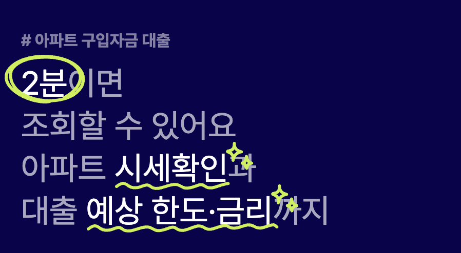 아파트 구입부터 대출 갈아타기, 생활안정자금까지 K뱅크 아파트담보대출로 가능합니다.
